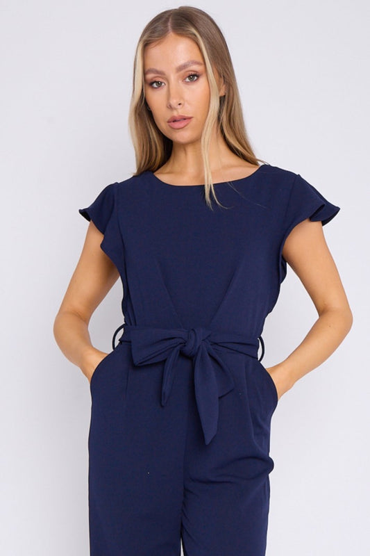 Navy Wide Leg Belted Jumpsuit
