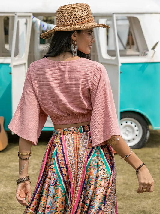 Textured V-Neck Crop Top