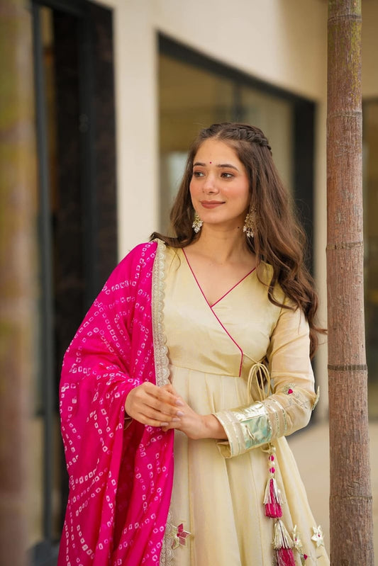 Vendor:AaraPink Banarasi Silk Anarkali Kurti