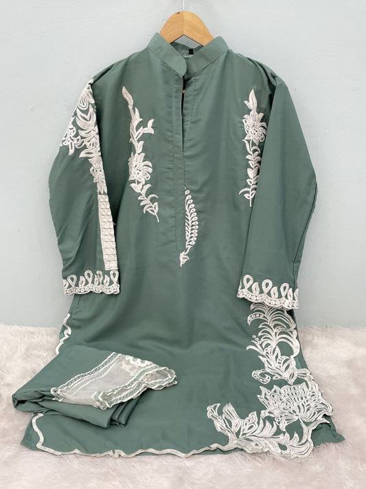 Royal Olive Designer Kurti with Pant & Dupatta