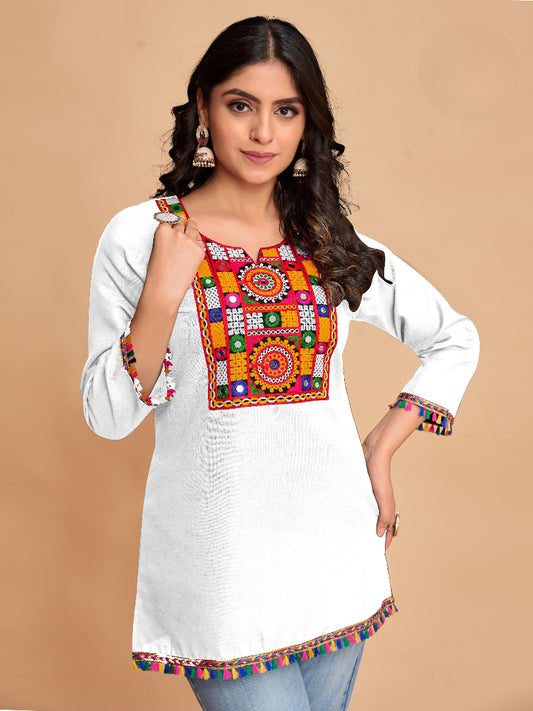 Vendor:AaraWhite Chinon embrodiered Top & Plazo