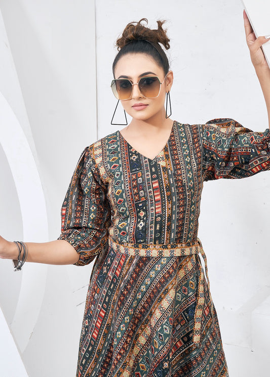 Multi Colored Rayon Digital Printed Westrn Kurti