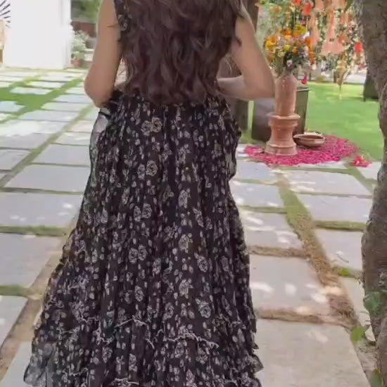 Fox Georgette Black Floral Print One Piece