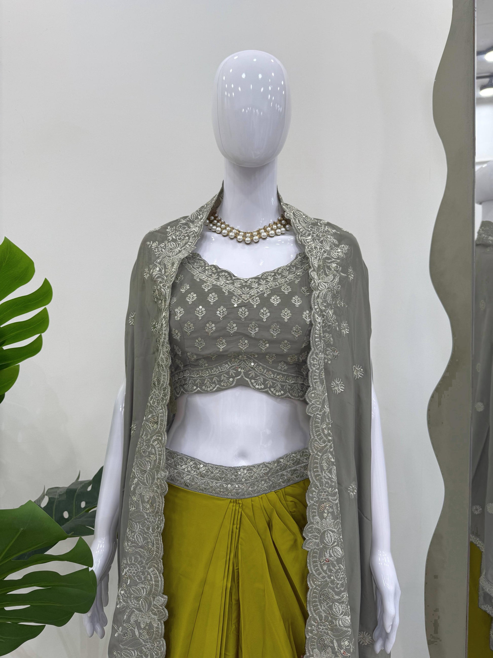 Package Includes: 1 Choli, 1 Dhoti, 1 Shrug