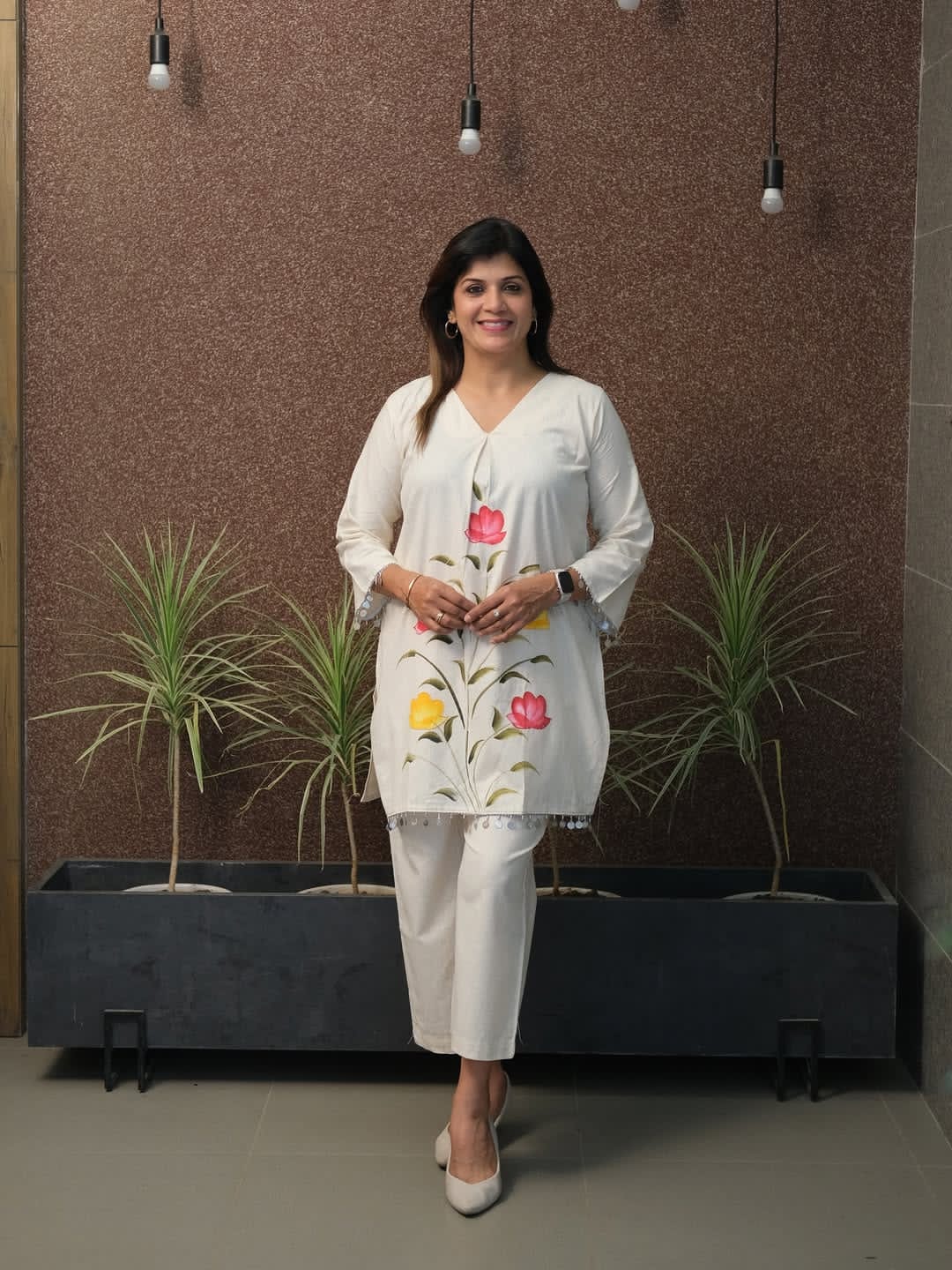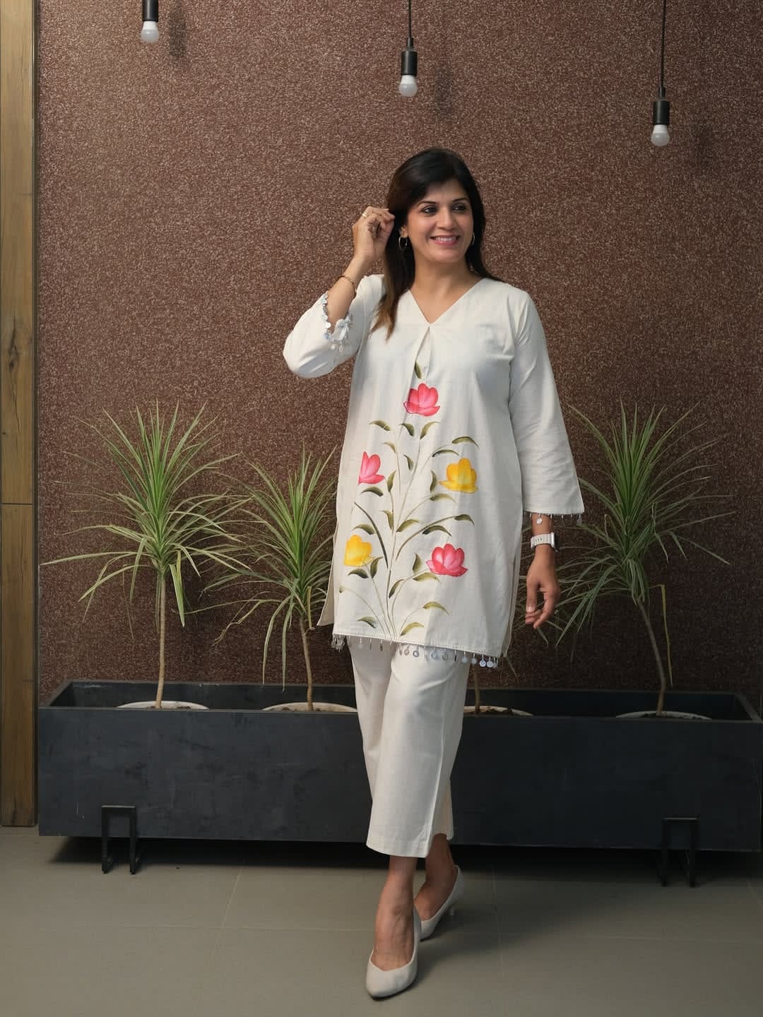 Step into festive vibes with our Premium Brush Print Cord Set – stylish, comfy & elegant with lace detailing!