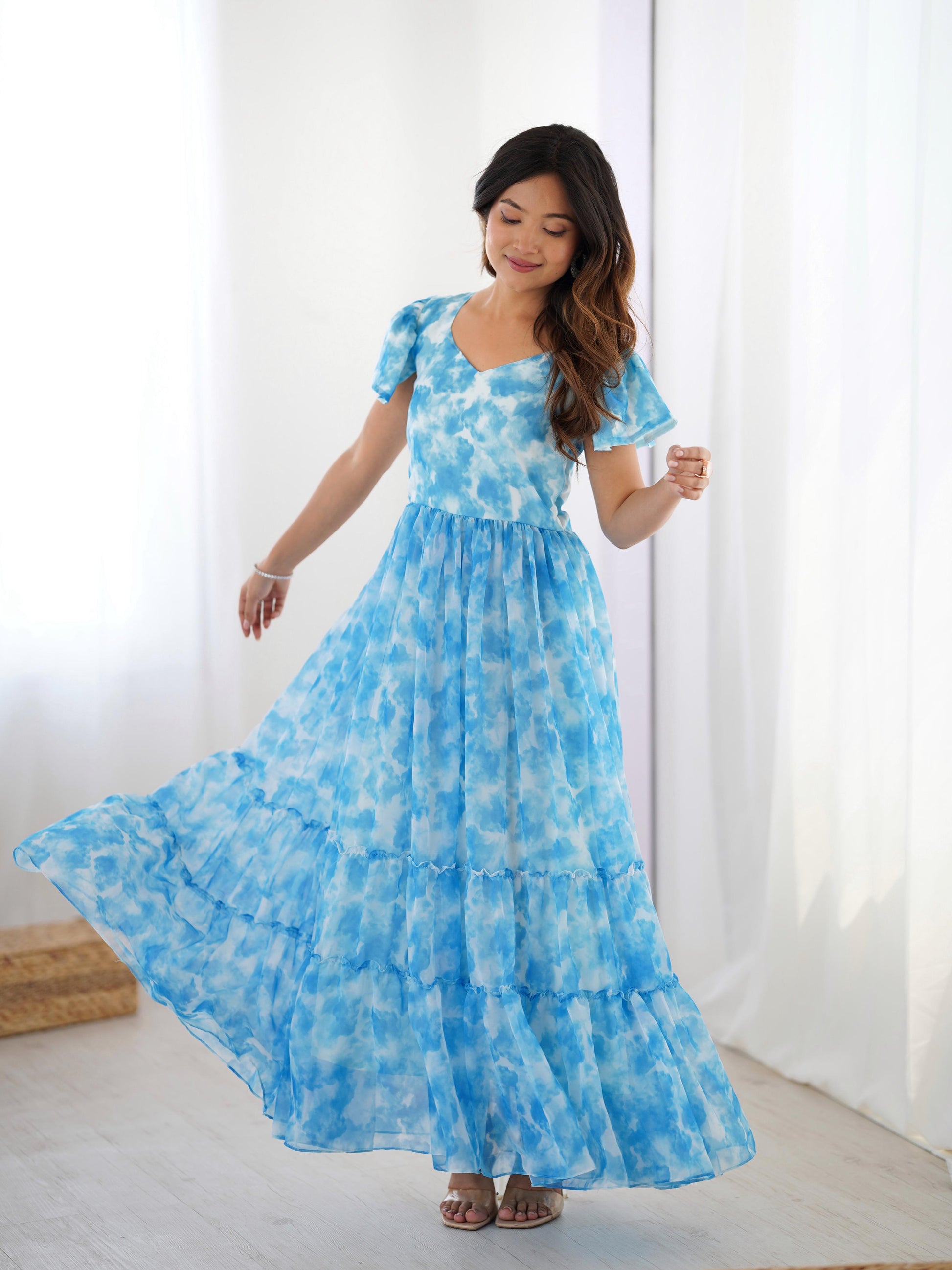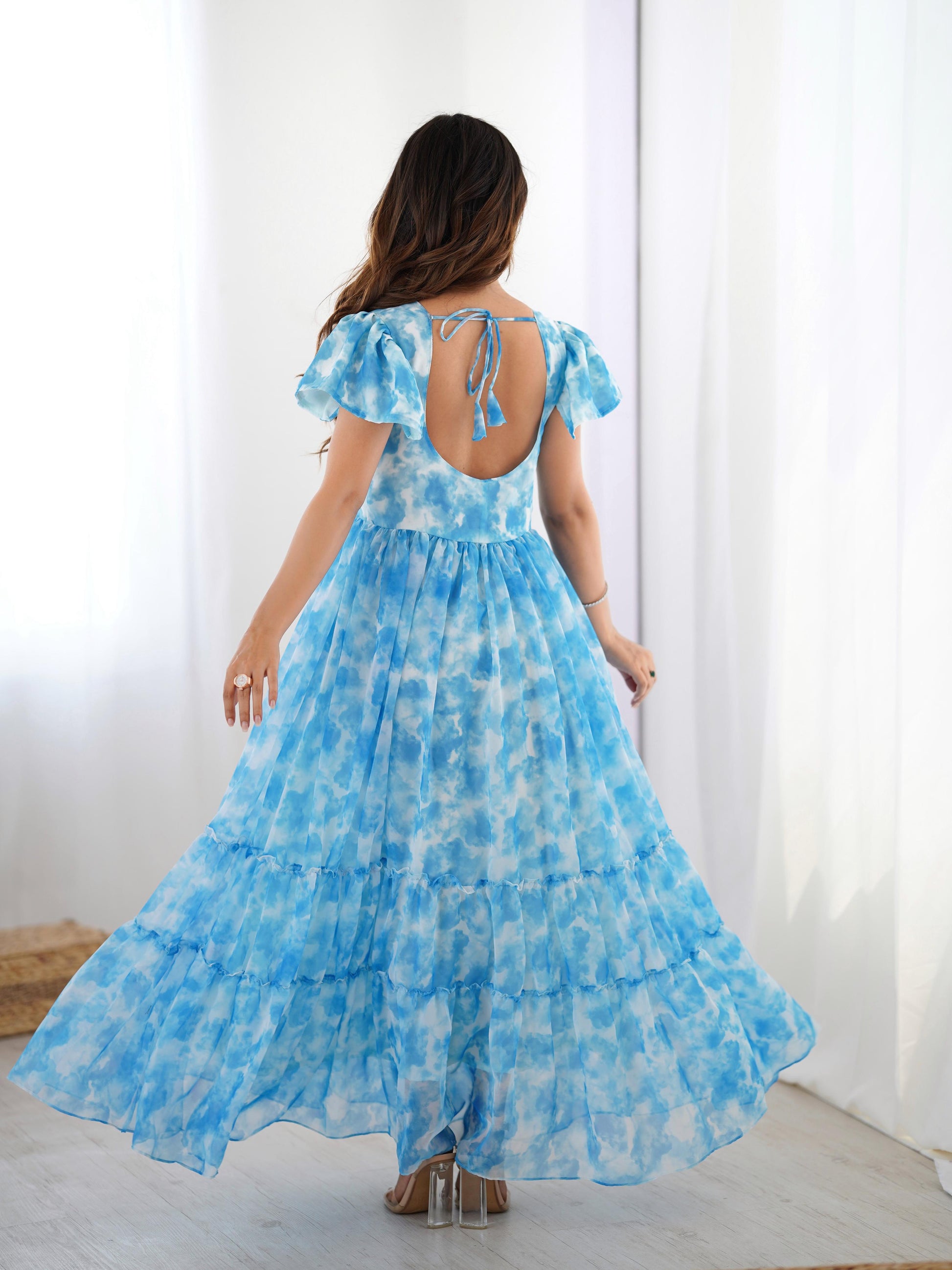 Sky Blue Georgette Digital Printed Wester Kurti