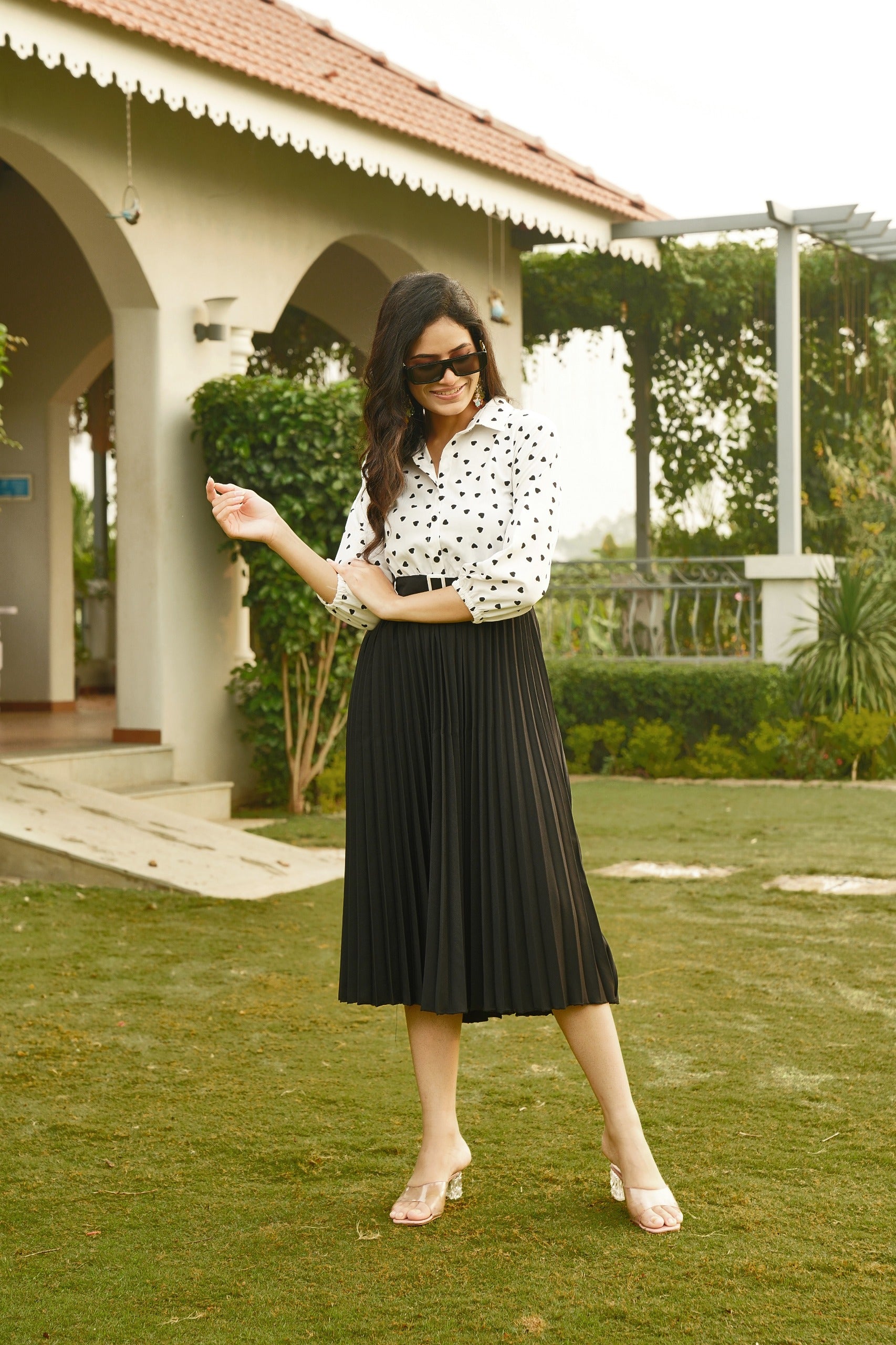 Fit Type: Regular Fit Shirt | Flowy Pleated Skirt